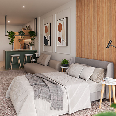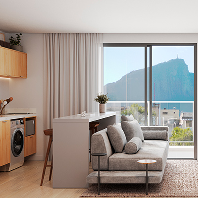 1. Todas as perspectivas, plantas, fotos e imagens contidas neste material publicitário são meramente ilustrativas, seus elementos de composição podem sofrer alterações de cor, forma, textura e tamanho. 2. As unidades privativas e áreas comuns do projeto serão entregues obedecendo ao projeto executivo e conforme as especificações constantes do Memorial Descritivo, que prevalecerá em caso de conflito com qualquer outro material ou informação relativa ao empreendimento, e este poderá sofrer alteração sem aviso prévio em função de posturas municipais, legais e concessionárias. 3. No interesse do bom andamento da obra, a construtora poderá substituir quaisquer especificações de material descritas neste Memorial Descritivo por similar de mesma qualidade, sempre que encontrar dificuldades em sua aquisição, a fim de evitar atraso em seu cronograma. As padronagens serão definidas de modo a obter-se harmonia e bom gosto na concretização final da unidade. 4. A infraestrutura do sistema de ar-condicionado tipo split ou multi split compreende o dreno da evaporadora, a tubulação de cobre com isolamento térmico, os cabos de força com comando e o ponto de força no quadro elétrico. Ao proprietário caberá a compra dos equipamentos internos e externos, bem como a integração dos mesmos à infraestrutura fornecida. 5. A decoração, iluminação, equipamentos e mobiliário das unidades privativas são apenas sugestões, não fazendo parte integrante da unidade. 6. Os equipamentos, mobiliários e elementos decorativos (quadros, tapetes, livros, almofadas, cortinas) constantes do presente material são referenciais, podendo sofrer revisão de modelos, especificações e quantidades, sem aviso prévio, não sendo entregues os utensílios, adornos e acessórios eventualmente previstos nas imagens. A incorporadora não se responsabiliza por elementos decorativos representados nas ilustrações artísticas. 7. O empreendimento será entregue com a vegetação implantada por meio de mudas, conforme especificação do projeto paisagístico. As imagens apresentadas nos desenhos, artes, perspectivas, anúncios, ou qualquer outra forma de veiculação, representam artisticamente a fase adulta das espécies, que será atingida ao longo do tempo. 8. As imagens, ilustrações, plantas humanizadas referentes ao empreendimento apresentadas no stand de vendas, folder, material publicitário, outdoors, anúncios ou qualquer outra forma de veiculação são meramente ilustrativas, podendo apresentar variações em relação à obra final em função do desenvolvimento dos projetos executivos, da necessidade de adequações técnicas, ou do atendimento a postulados legais. 9. As vistas apresentadas nas imagens são meramente ilustrativas, podendo não retratar a realidade do local do empreendimento. 10. As unidades serão entregues com esquadrias entre os ambientes abertos e fechados, conforme projeto aprovado na Prefeitura Municipal e Corpo de Bombeiros. 11. Não serão admitidas modificações nas unidades ao longo do andamento das obras, exceto as eventualmente oferecidas pela incorporadora. 12. A configuração e os níveis da implantação do empreendimento estão sujeitos a alterações decorrentes de exigências técnicas e estruturais, ao atendimento das posturas municipais, concessionárias e condições do entorno. 13. As imagens de áreas privativas podem possuir configurações diferentes do padrão do empreendimento, no que diz respeito à opção de planta e acabamentos, rebaixos, sancas decorativas, mobiliários e artigos decorativos, não sendo parte integrante do contrato. Para informações sobre o padrão do apartamento, consultar o Memorial Descritivo. 14. As áreas de lazer, vias, vagas e circulação do empreendimento estão sujeitas a alterações decorrentes das exigências das posturas municipais, concessionárias e condições do local. 15. Eventualmente, para atendimento de necessidades técnicas, poderão ser executados shafts e/ou enchimentos, bem como poderão ser alteradas as posições de peças sanitárias. 16. A incorporadora não se responsabiliza pelas construções vizinhas ao empreendimento. Itens como acréscimo nas edificações existentes no entorno, aberturas de janelas, alterações de afastamentos, entre outras condições dos imóveis de terceiros, podem ser verificados no local, cabendo ao Poder Público fiscalizar a regularidade das construções vizinhas ao empreendimento. 17. As informações contidas em todo material publicitário veiculado são meramente ilustrativas, não se configurando como parte de qualquer instrumento legal, podendo, inclusive, ser alteradas sem aviso prévio. 18. As unidades 401 a 801 e 402 a 802 poderão ser adaptadas para acessibilidade conforme a Lei no 13.146, de 6 de julho de 2015, que institui a Lei Brasileira de Inclusão da Pessoa com Deficiência - Estatuto da Pessoa com Deficiência. O cliente precisa solicitar a adaptação até o início das obras. 19. PRPA: Bianca de Souza Bruno CAU A62283-4 e Priscilla Rembischewski: CAU A179841-3 | PREO: Manuel Fiaschi CAU A29668-6. 20. Memorial de Incorporação registrado na matrícula no 22722 junto ao Cartório do 5o Ofício de Registro de Imóveis do Rio de Janeiro.