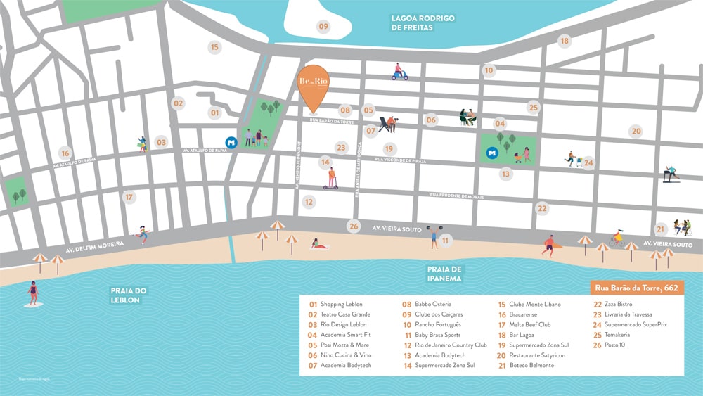 Entre o Posto 10 e a Lagoa Rodrigo de Freitas, na parte mais tranquila da Barão da Torre, mas a passos de todo o burburinho de uma vida ao ar livre incomparável. Conforto e funcionalidade em um dos melhores bairros da Zona Sul.