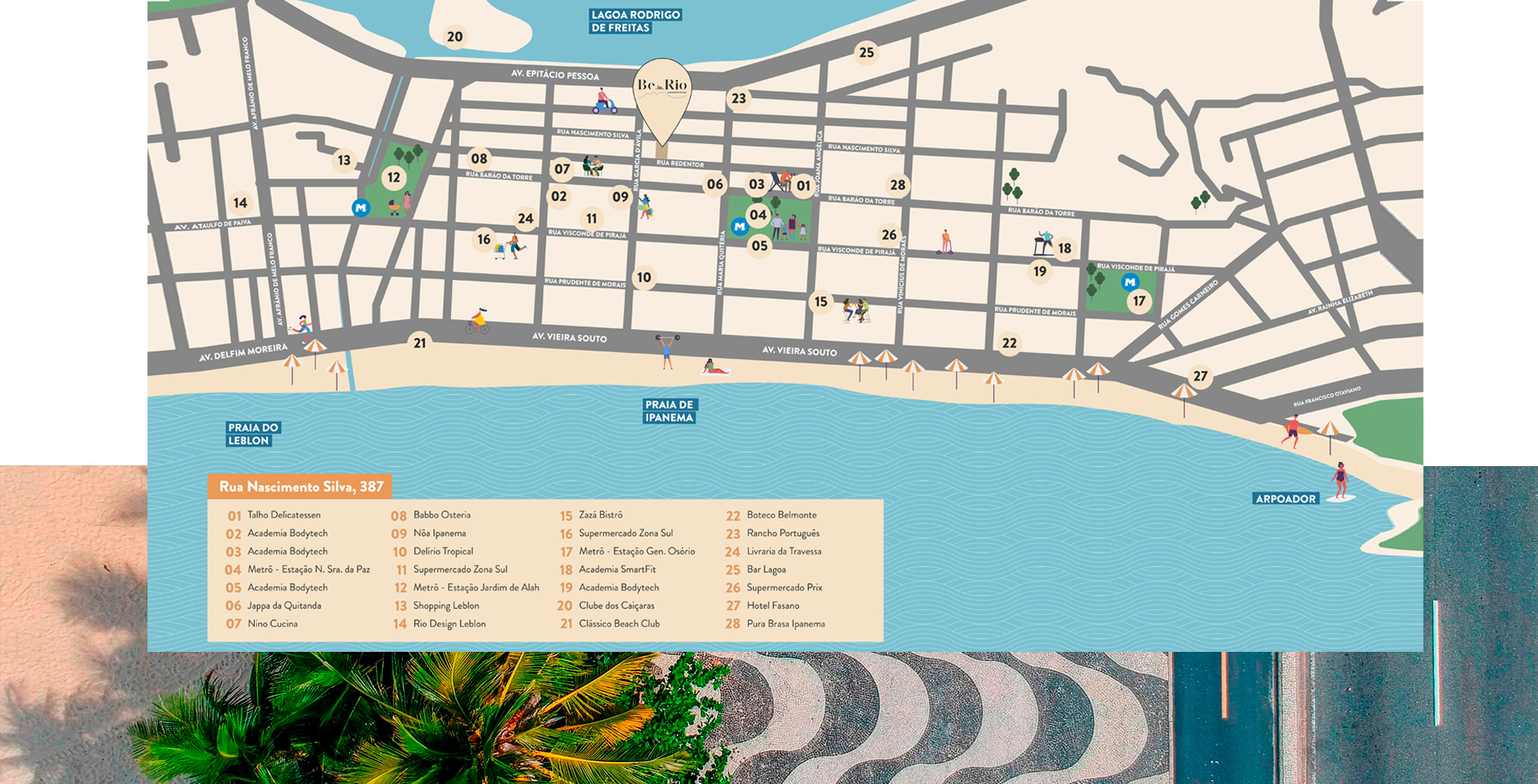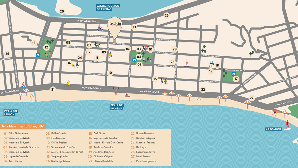 Entre o mar e a Lagoa, uma rua calma e arborizada, cercada por uma gastronomia estrelada, cultura, as melhores lojas, inúmeras soluções de mobilidade: é possível ter um estilo de vida vibrante, sem abrir mão da tranquilidade.